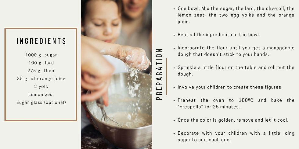 Today we bring you a recipe to know how to make a cookie, the one known in Mallorca as “crespells”. In this way your children will make the shapes and figures of this delicious cookie.